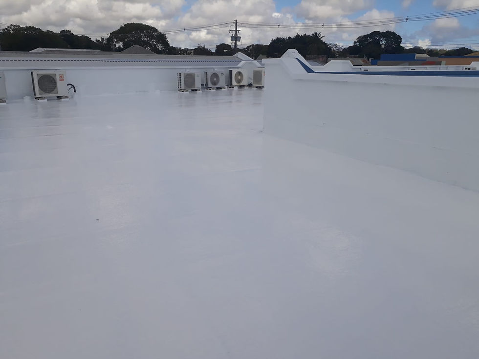UV resistant, liquid elastomeric coating system which dries to a highly durable, seamless, weather resistant, protective ‘skin’.
